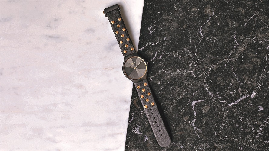This study in contrasts continues on the strap, where the supple, grained black leather is offset with gold coloured studs set in a hopscotch pattern. The matt-black high-tech ceramic monobloc case with gold coloured elements on the dial ring and crown complete the aesthetic of Rado’s latest collaboration.